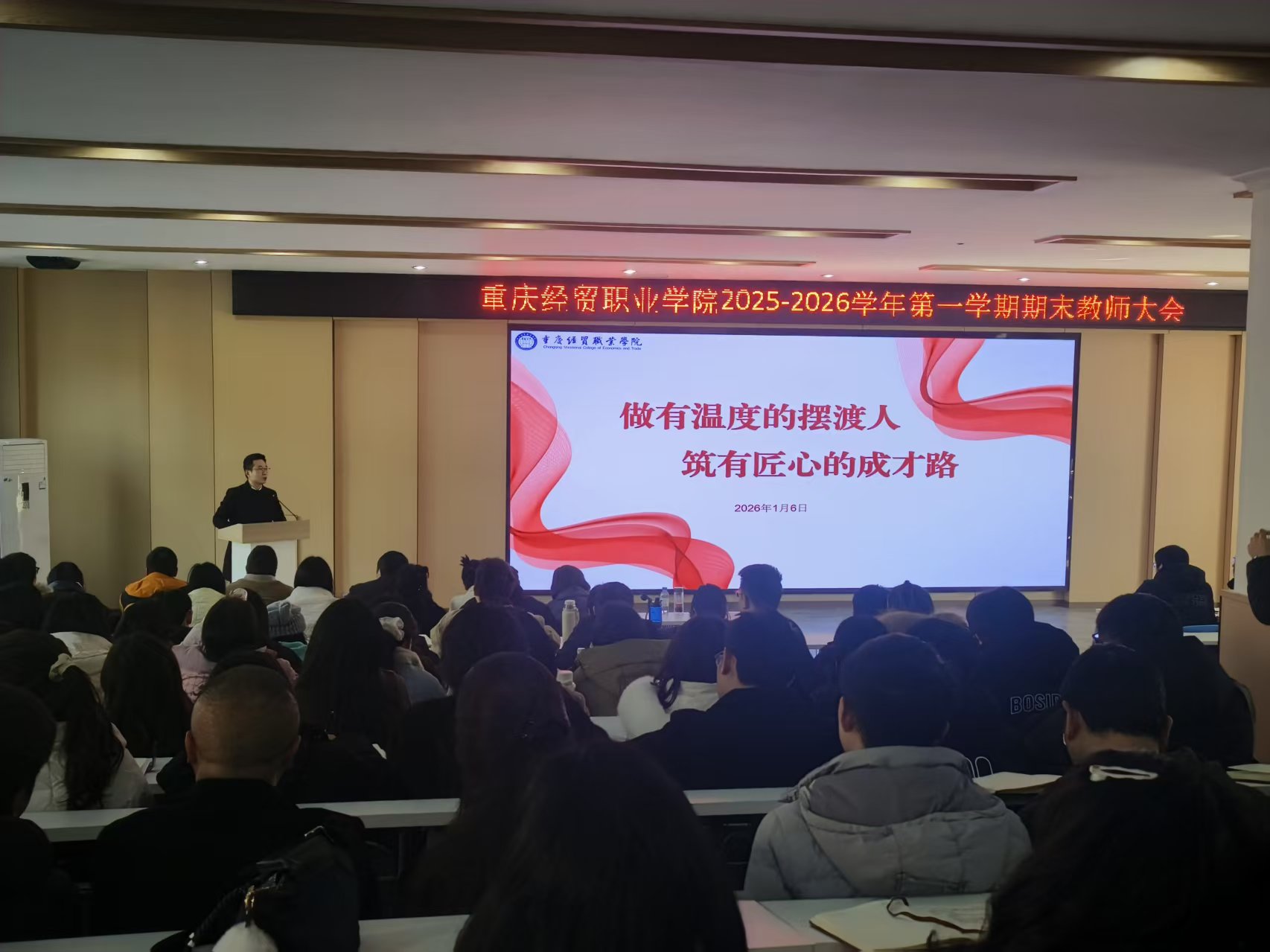 近日,beat365在笃学楼乐学厅召开了2025-2026学年第1学期期末教师大会。校长助理陈凯,教务处、科研处、各二级学院主要负责人,全体专兼职教师参加大会。会议由教务处副处长唐芳主持。