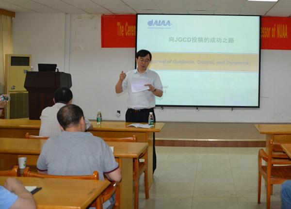2014年6月6日下午,南航开云kaiyun官方网站智能楼4楼报告厅,在开云kaiyun官方网站姜斌院长的主持下,JGCD(The AIAA Journal of Guidance, Control, and Dynamics)第三任主编陆平教授做了“向JGCD投稿的成功之路”的报告。