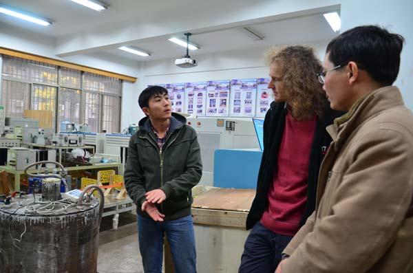 上午,Wheeler教授在张卓然教授的陪同下,参观了电气系航空电源重点实验室、江苏省新能源发电与电能变换重点实验室,与重点实验室老师和研究生们进行了广泛交流和讨论,对我校在航空电源及新能源发电系统方面的研究成果给予了高度评价,充分肯定了两校在航空电源系统方面有很多共同的研究兴趣。