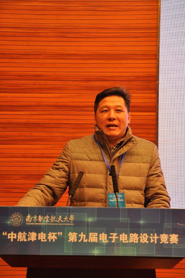 闭幕式上,刘建成书记代表比赛承办方致辞,他简要回顾了校电子电路设计竞赛的发展历程,总结了本届比赛的基本情况,高度赞扬了参赛同学对科技实践的热情,寄予他们创新路上一往无前的殷切期望与实现梦想的美好祝愿,并对校内外各方对比赛给予的关注和支持致以诚挚的谢意。中航津电经营管理部部长张宝代表本届竞赛的冠名方,向活动的成功举办表示了祝贺,同时表达了中航津电将继续支持竞赛和深入开展院企合作的良好愿望。评委组组长潘克修对此次竞赛的参赛情况作了细致、客观的点评,充分肯定了参赛学生良好的科研素质,同时对比赛中出现的问题进行了分析与讲解。紧张而热烈的颁奖环节后,获得省电子电路设计竞赛一等奖及全国电子电路设计竞赛二等奖的惠琦同学作为优秀参赛代表发表了参赛感言,他分享了自己连续两年的参赛经历与体会,讲述了他在科创之路上坚持不懈的成长心得。最后,吴庆宪副校长为大赛做了总结讲话,他对校内外各方给予本届竞赛的支持表示感谢,对校企合作共同促进人才培养质量提升的模式给予肯定,对获奖同学表示祝贺,并寄语广大同学,希望大家善于总结,勤于思考,在理论与实践的结合中提升自我。