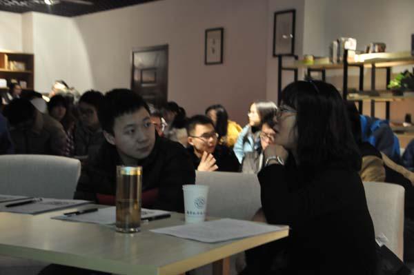 在同学自由交流个人读书经历和感想的环节中,大家重拾了对读书的喜爱与热忱。“你话我猜”的游戏环节,同学们积极参与,现场气氛轻松愉悦。最后,各小组从亲情、决定、爱国等话题中选择一个展开讨论并派代表交流陈述小组观点。何朋老师总结时结合自己亲身经历为大家讲述了亲情的可贵。