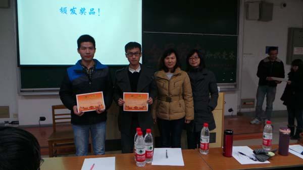 12月28日与29日晚,由2012级党支部和团总支中心组联合举办的两场“全民突击”专业知识竞赛活动在将军路校区6101教室成功举行。电机学陈宝林老师,数字电子技术林华老师,自动控制原理何真老师, 203班班主任毛玲老师,204班班主任朱学忠老师,12级辅导员晏辞老师以及各专业同学参与了此次竞赛。