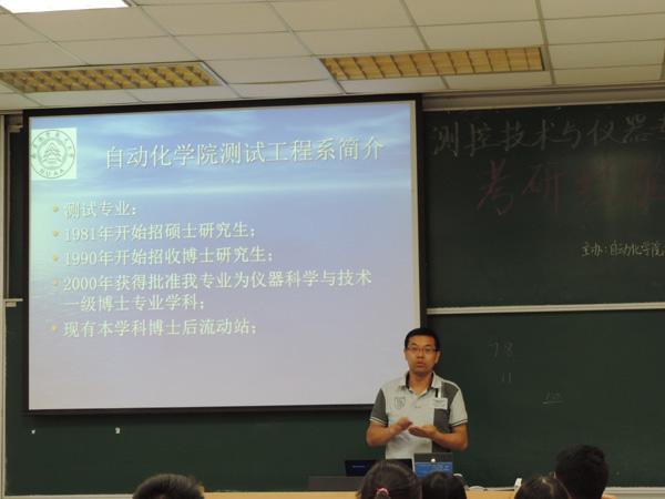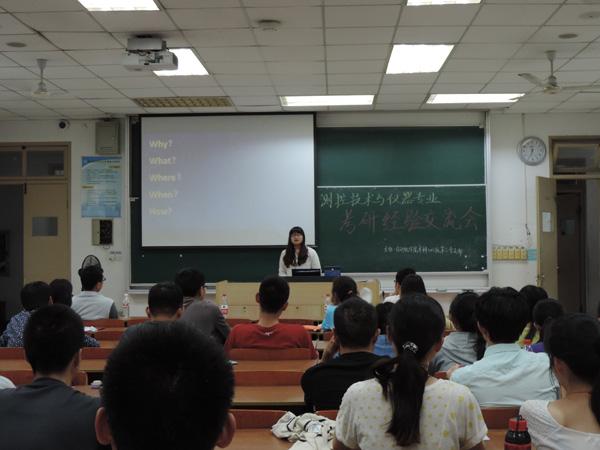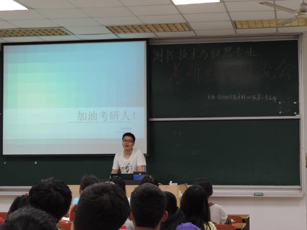 4月28日晚6:30,开云kaiyun官方网站2012级本科生第二党支部在将军路校区6102教室举办了测控技术与仪器专业考研经验交流会。开云kaiyun官方网站测试工程系副主任、博士生导师徐贵力教授主讲考研政策解读,2011级成功考研学生顾舒娅、仇三铭作考研经验交流, 2012级测控技术与仪器专业有考研意向的学生参加了此次交流会。