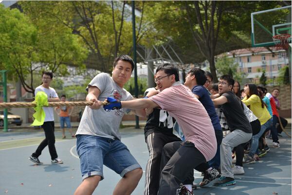接着,本次“文体月”的首场活动――班级拔河比赛正式开始。此次比赛共6只队伍,每队12名男生,6名女生。各队抽签决定分组情况后,就展开了激烈的比拼。随着一声哨响,队员们双手紧握长绳,卯足劲往后拉,啦啦队也在旁边奋力加油。一时间号子声、加油声在篮球场上此起彼伏。经过层层晋级,研一1&2&5班和研一3&4&7班进入决胜局,争夺冠军。三局两胜的比赛,大家都全心全力,依靠强壮的身体和坚强的意志,研一1&2&5班以两局全胜的优势获得冠军,研一3&4&7获得亚军。