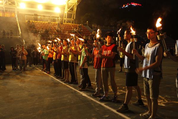 待习习微风拉开了夜幕,接力赛也随之开始。在一段精彩的啦啦操后,各院的运动员迈着矫健的步伐依次入场,赛场上的气氛也渐渐变得紧张起来,各院的首棒火炬手接过由各院领导亲自点燃的火炬之后,在赛道上准备就绪,随着裁判员的枪声响起,整个赛场的氛围急剧升温,比赛也格外激烈起来。