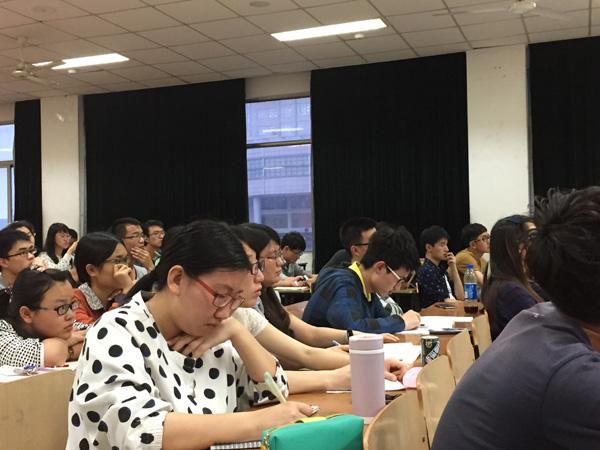 会上,张绍杰老师首先对历年考研情况做了总结接着介绍了自控系相关导师情况,强调了考研重在坚持。包胜学长和周俊学长对考研从准备工作到具体复习计划以及应试技巧几个方面对大家进行了全面的介绍。其中周俊学长的风趣讲解,让大家听得津津有味,同时他从自己身边的一些失败例子给我们也敲响了警钟。另外于鸿达,鲁之君学长着重给大家又讲了复习以及调剂方面的相关事情。最后考入上交的蔡慧敏学姐为大家分享了考取外校的成功经验,包括资料如何获得、专业课有何差别等方面的问题。给了大家不一样的选择和思路。最后的提问环节,大家积极踊跃参与,现场气氛活跃。