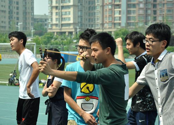 上午九点,活动正式开始,比赛的第一轮十分激烈,12支参赛队伍中仅6支可以晋级第二轮。该轮由袋鼠跳,跳大绳,打弹弓,抓石子,绑腿走五个小游戏组成,同队中的五人必须相互配合共同通关。这些看似简单的游戏,陪伴了大家无数的童年时光,如今却难住了参赛队伍。经过反复尝试和激烈角逐,6支队伍脱颖而出。第一轮结束后,主办方为参赛选手分发了精心准备的纪念品。