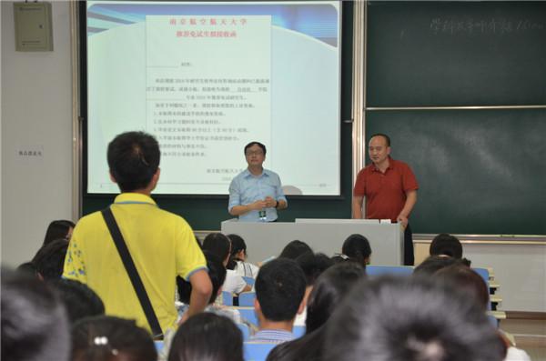 7月1日下午3点,我院2015年优秀生考核政策宣讲会在江宁校区D2302教室召开。学院党委书记刘建成,副院长赖际舟,测试工程系副主任徐贵力,院教学办主任、研究生教务员、辅导员参会。 赖际舟首先介绍了学院基本情况,然后向各位本科生介绍了《开云kaiyun官方网站开云kaiyun官方网站2016年综合考核选拔优秀应届本科毕业生攻读硕士学位研究生办法》,并表示欢迎同学们积极报考开云kaiyun官方网站研究生。 刘建成强调,开云kaiyun官方网站的师资力量,教学、科研条件,人才培养模式等方面在南航处于领先水平,他鼓励同学们抓住机会参加优秀生考核,欢迎大家加入开云kaiyun官方网站大家庭。