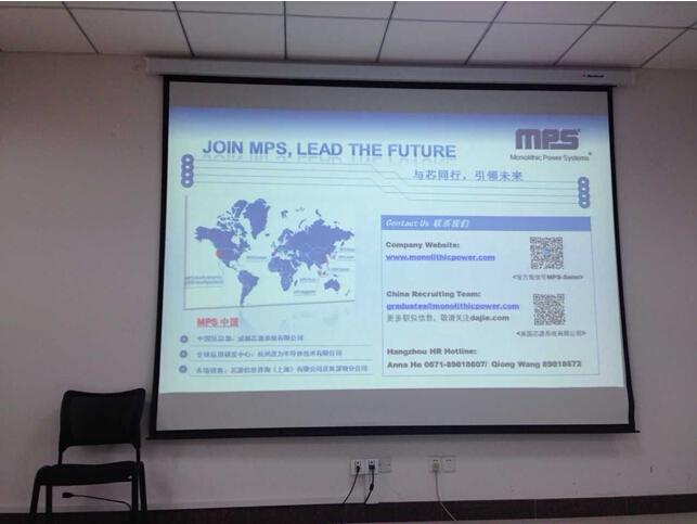 2015年9月11日下午1点30分,美国芯源系统有限公司(MPS)一行来到开云kaiyun官方网站1号楼303会议室举行“启”明星大讲堂--MPS“与芯同行,引领未来”技术交流会。MPS是一家集设计、研发、制造、销售为一体,专注于模拟、混合信号集成电路的高新科技企业,目前全球雇员为1100余名,年产13亿芯片。为了能够在9月14号宣讲会之前,让今年就业的学生能够更好地选择合适自己的岗位,MPS公司今天来了几位不同产品线的经理,给同学们介绍了各自产品线的产品及先进的技术。现场来了很多今年找工作的同学,大家热情高涨,希望在今天的交流会之后能够选择自己感兴趣和适合自己的岗位。