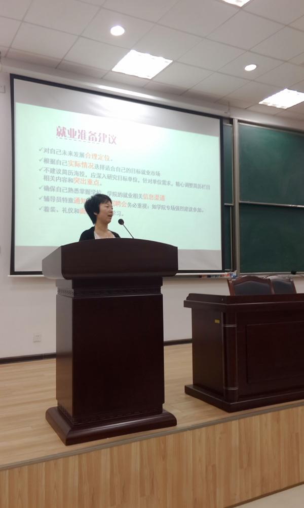 9月21日下午,我院在将军路校区D1213教室召开了以“大数据视角下的就业策略分析”为主题的2016届本科毕业生就业动员大会。院党委副书记沈伯秀出席会议,毕业班辅导员陶琨、晏辞参会。