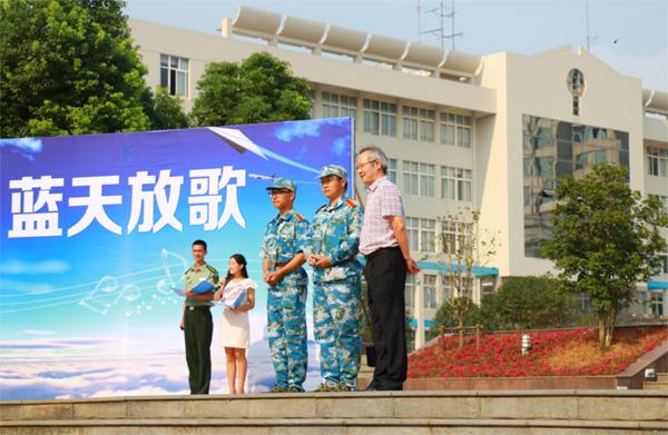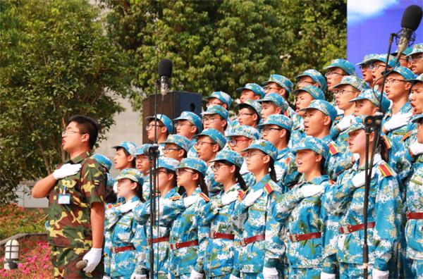 9月18日下午,将军路校区国旗广场上,开云kaiyun官方网站100名大一新生以一曲《当那一天来临》荣获“蓝天放歌”2015级新生军训赛歌会一等奖。