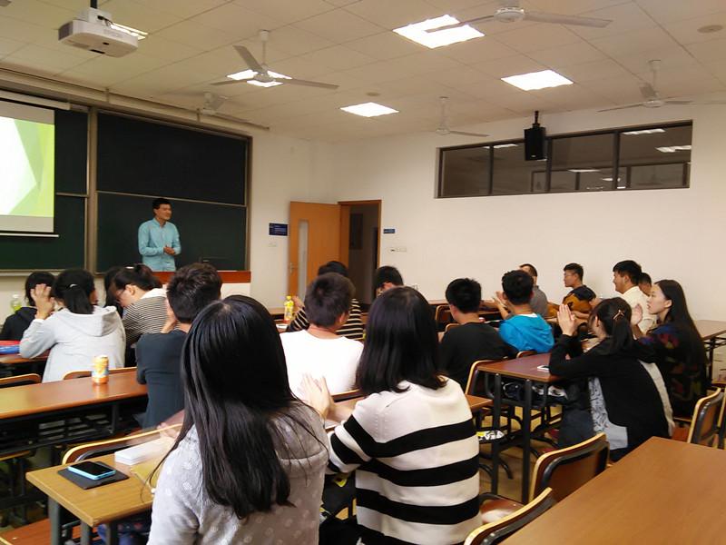 班主任杨忠老师也为同学们参与科创提出了一些建议。杨忠老师指出,科创在于两个字:术、道。术是战术、是零碎的、不全面的;道是战略、是浓缩的、全面的。懂得术的人很多,但最后得道的却寥寥无几。大二学习的电路理论便是“术”,在今后科创过程中熟练运用、真正理解才能成为“道”。他还强调,要学有余力再去科创;科创的出发点不能是功利,要有真正想做的东西;有了兴趣,有了专业全面、志同道合的团队,有了方法便也就有了目标,但还需信念来指引行动坚持;要有远大志向,潜心研究超过国外水平,争当第二个“马云”、第二个“屠呦呦”。