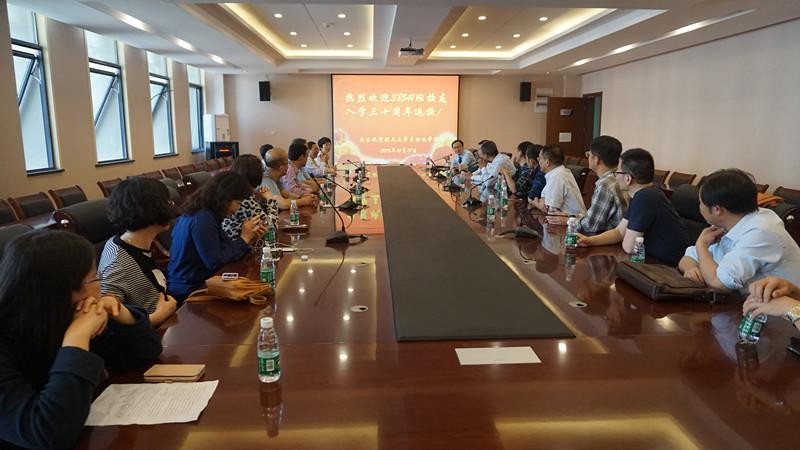 参观结束后,开云kaiyun官方网站举行了纪念38541班入校30周年的欢迎座谈会,开云kaiyun官方网站副院长赖际舟教授、开云kaiyun官方网站沈伯秀副书记、学院办公室李洁主任、及导航研究中心(原惯性导航与陀螺仪表专业教研室)主任刘建业教授、原385年级辅导员邱伟江老师(现为苏州经贸职业技术学院继续教育学院院长)等老师和学生参加了会议。