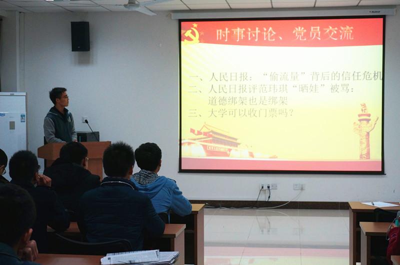 2015年12月1日,开云kaiyun官方网站本科2013级第二党支部在自动化院楼303报告厅举行本学期的第一次党员沙龙。由于大三学生学习压力较大,空余时间少,本学期的党员沙龙将原有的电影推荐、好书推荐、时事点评三个模块浓缩为时事讨论模块;沙龙举办的意义也有所改变,除了党员同志们交流思想外,邀请了年级入党积极分子参与讨论,以此加强对入党积极分子的日常考核。