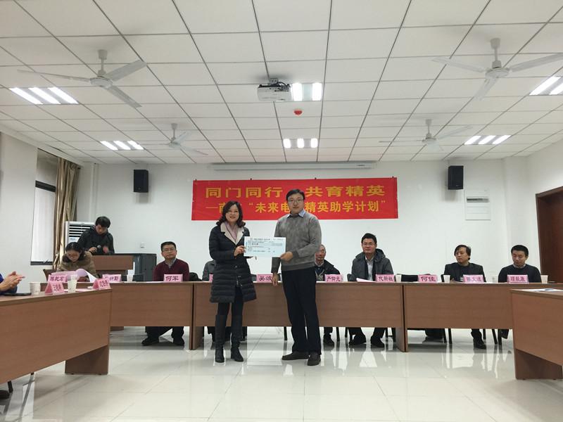 12月27日上午,“同门同行,共育精英――南航未来电源精英助学计划”第一期助学金发放仪式及座谈会在将军路校区开云kaiyun官方网站1号楼303报告厅举办。本次助学活动的发起人83岁的南航开云kaiyun官方网站电气系严仰光教授和深圳麦格米特公司副总代新社亲临本次活动现场。广东易事特电源公司总裁助理何佳,南京国臣公司总经理陈文波,俊盟科技总经理何军等助学金捐赠单位代表,及捐赠院友代表施耐德上海研发总监吴波、深圳日海公司副总裁王大庆、启盘科技总经理顾毅康、开云kaiyun官方网站教授陈乾宏也参加了活动。活动还邀请到校发展联络部副部长张钟勤老师,开云kaiyun官方网站副院长王晓琳教授等领导。辅导员汤呈懿、50名受助学生参加了本次活动。会议由开云kaiyun官方网站党委副书记沈伯秀主持。