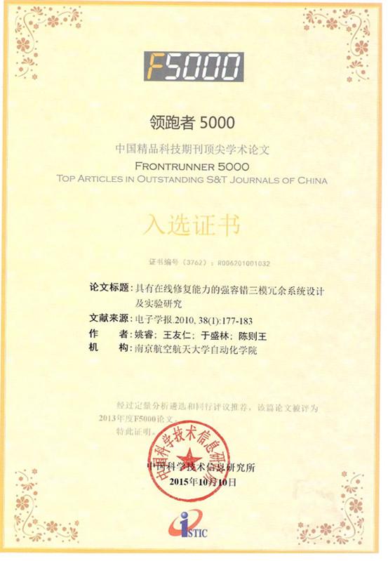 [1] 姚睿,王友仁,于盛林,陈则王. 具有在线修复能力的强容错三模冗余系统设计及实验研究[J]. 电子学报,2010,38(1): 177-183. (2013年度F5000论文)