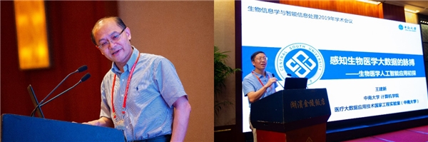 中国科学院上海系统生物学研究所陈洛南研究员(左)和中南大学王建新教授(右)作大会主题报告