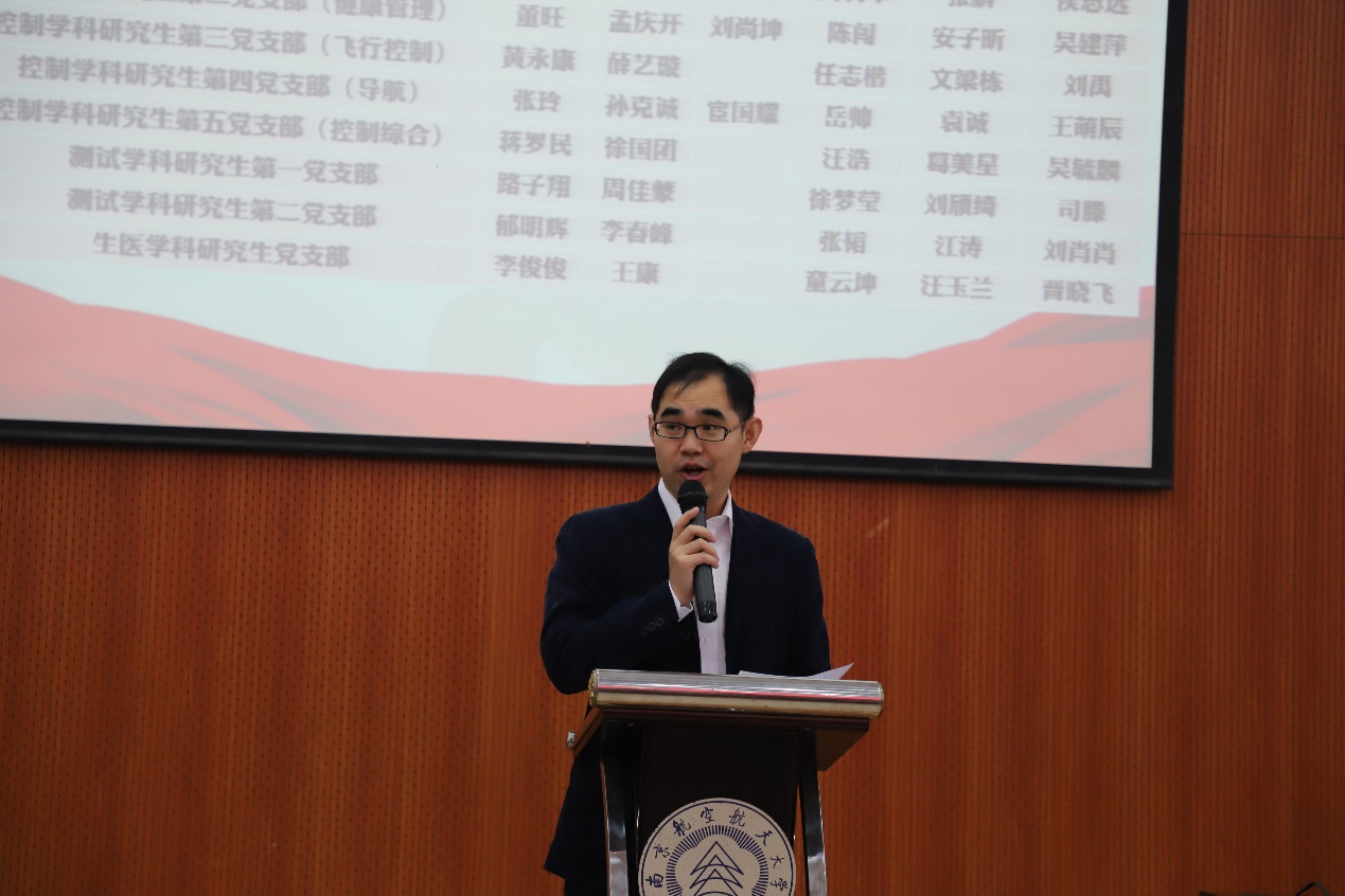 10月20日上午9点,开云kaiyun官方网站研究生纵向党支部成立仪式在将军路校区二号教学楼2110教室顺利召开。仪式由学院团委书记刘斐文同志主持,国家首颗电磁监测卫星(张衡一号)工程总设计师江帆,学院党委书记刘建成,党委副书记张跃,控制学科研究生第四党支部书记张玲,测试系支部书记贾银亮,测试系教授赵敏,学院学生党支部书记及学院本科生、研究生党员代表、发展对象均出席了本次成立仪式。