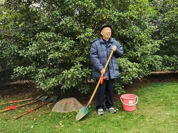 两位院士为亲手种植的树木培土并合影