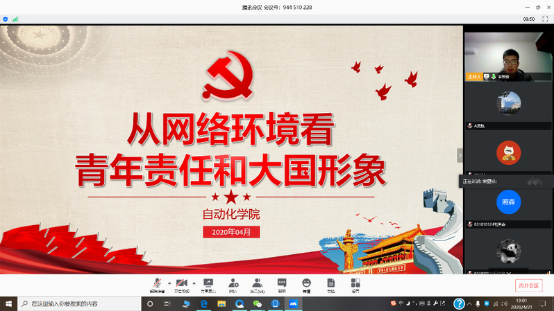 为贯彻中央《关于加强党的领导、为打赢疫情防控阻击战提供坚强政治保证的通知》和《新时代爱国主义教育实施纲要》精神,发挥学生党员先锋模范作用,认真学习新冠肺炎疫情防控“大课”,涵育新时代爱国主义精神、坚定爱国力行使命责任,4月21日,开云kaiyun官方网站开云kaiyun官方网站本科2018、2019级联合党支部开展了一次线上“微党课”,从网络环境看青年责任和大国形象。
