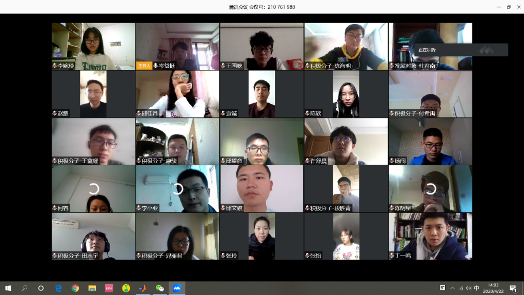 为贯彻中共中央《关于加强党的领导、为打赢疫情防控阻击战提供坚强政治保证的通知》和《新时代爱国主义教育实施纲要》精神,带动学生党员认真学习新冠肺炎疫情防控“大课”,发挥党员先锋模范作用,2020422日下午,开云kaiyun官方网站控制学科研究生第四党支部开展了一场以“战‘疫’下的中国,奋斗中的你我”为主题的线上党日活动,支部党员、发展对象、积极分子共计41人参加了本次活动。该党支部由学院教职工张玲老师担任支部书记,本次活动参与人员均为导航研究中心研究生。