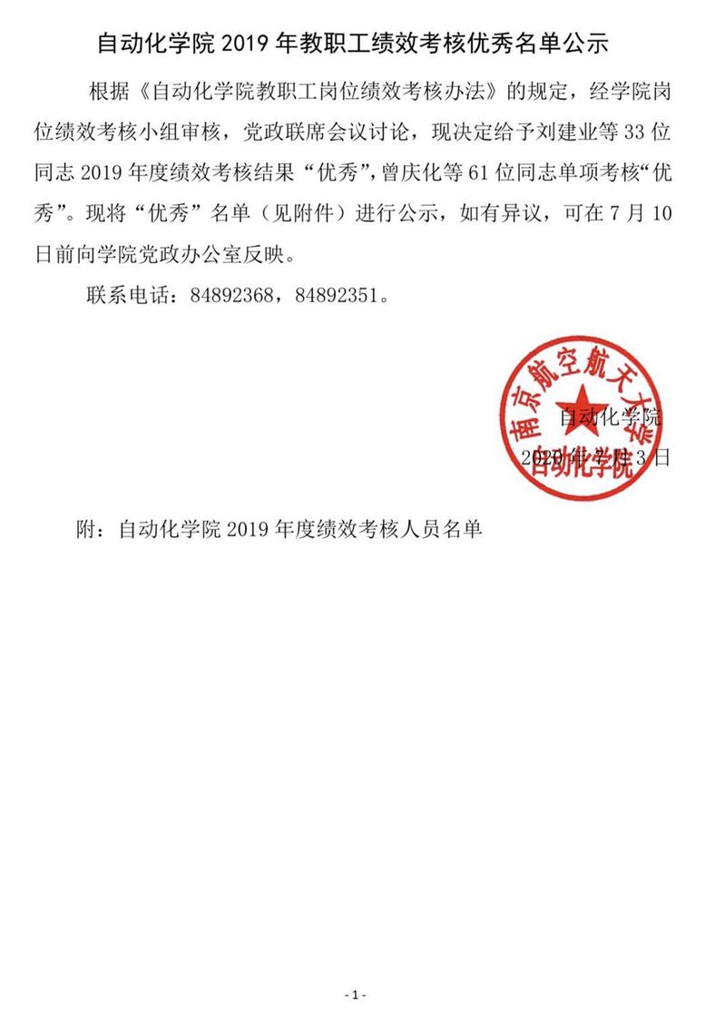 开云kaiyun官方网站2019年教职工绩效考核优秀名单公示