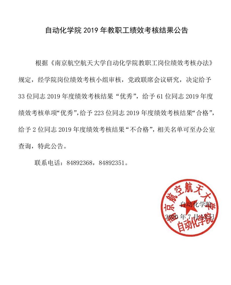 开云kaiyun官方网站2019年教职工绩效考核结果公告