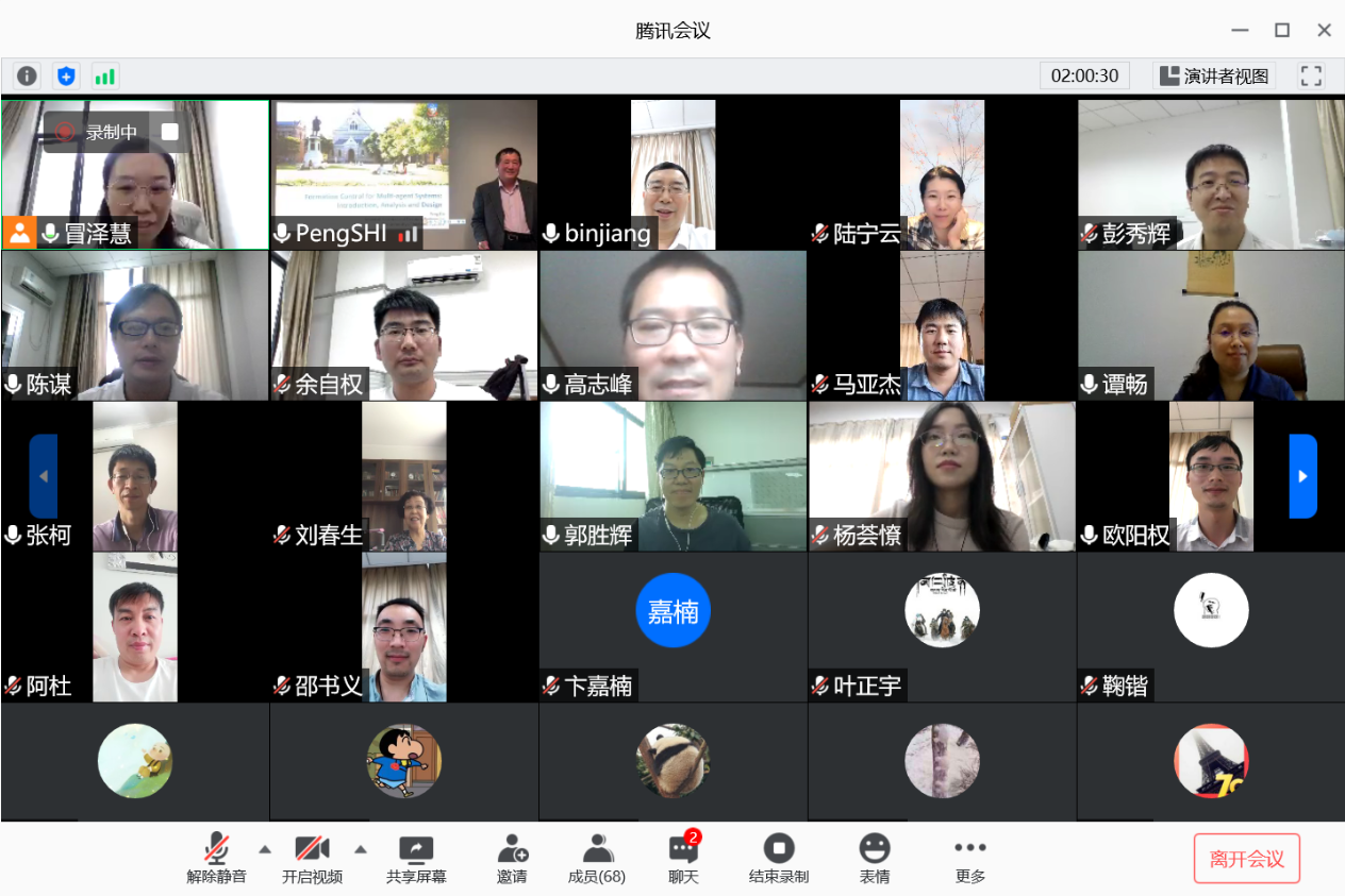 812日下午,澳大利亚阿德莱德大学电气与电子工程学院石碰教授应我校国际合作处和开云kaiyun官方网站的邀请,通过腾讯会议作了题为“Formation Control for Multi-agent Systems:Introduction,Analysis and Design的线上学术报告,报告由我校副校长姜斌教授主持。我院副院长陈谋教授,学院陆宁云刘春生、冒泽慧、欧阳权张柯、马亚杰等师生在线参加会议。参会师生对石碰教授的交流分享表示热烈欢迎。