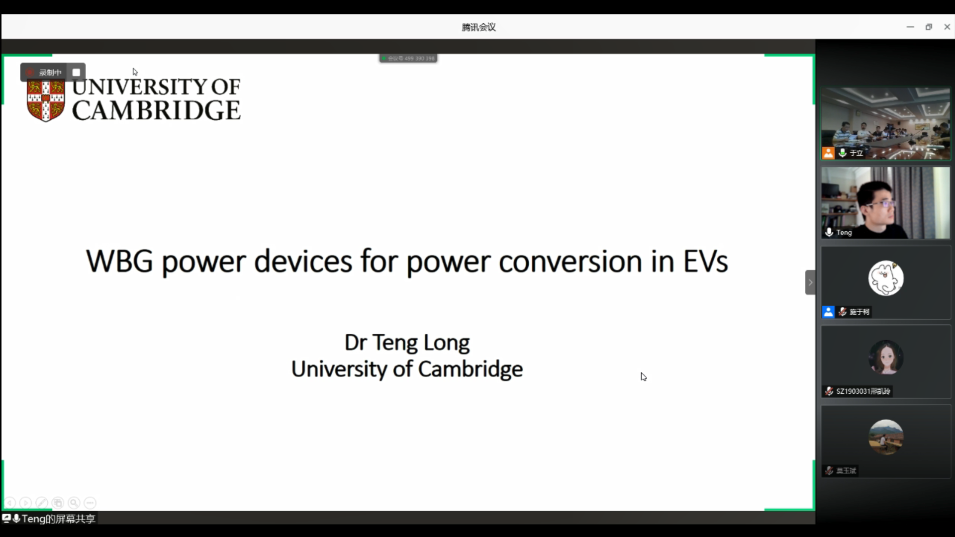 9月11日下午,剑桥大学应用电力电子实验室主任Teng Long老师应开云kaiyun官方网站的邀请,通过腾讯会议作了题为《WBG power devices for power conversion in EVs》的在线学术报告。报告由开云kaiyun官方网站副院长张卓然教授主持,学院20余位师生现场参会,另外,40余位师生在线参加了本次报告会。
