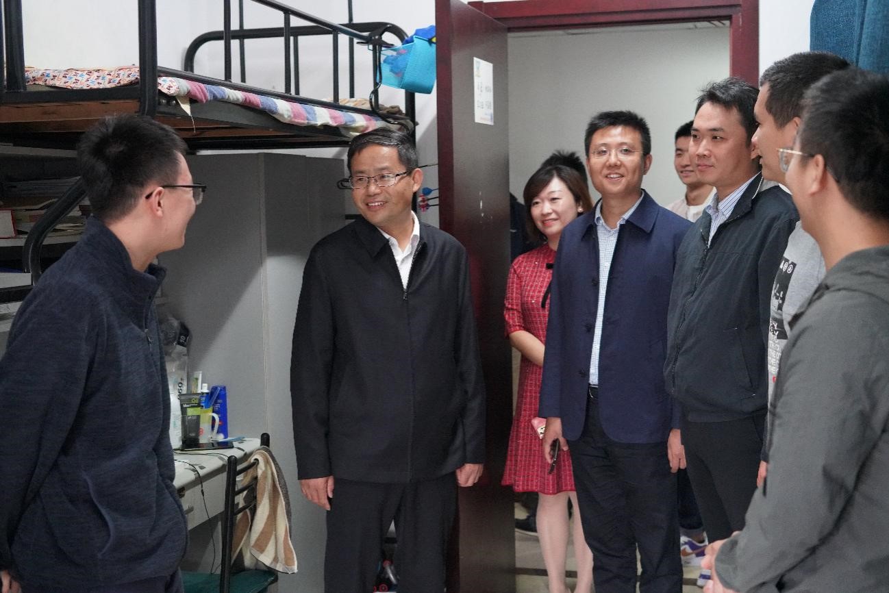 为进一步了解和掌握学生思想动态,关心开学以来学生的学习、生活状况,帮助学生解决实际困难,并有针对性的做好重点学生的关爱帮扶工作,校长单忠德、校党委副书记陶勇和全体院领导利用国庆、中秋“双节”期间分别走访了学院研究生工作室、实验室和学生宿舍,与学生开展面对面的深入交流。