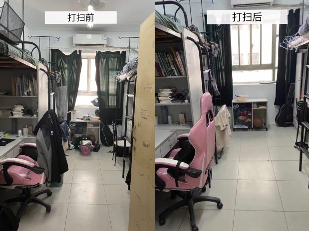 在交流中,同学们反映了怡园宿舍存在床铺小、洗衣机数量少的问题,辅导员们予以反馈。打扫后,学生们的宿舍焕然一新,学生对辅导员老师们表示了感谢,并表示往后会按照现在的标准保持下去,营造良好的学习和生活环境。