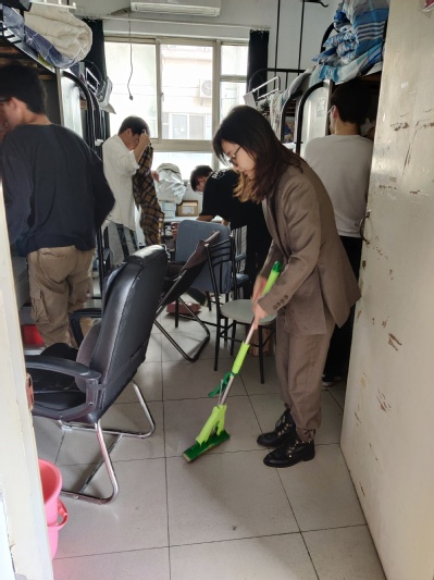 打扫过程持续近一个小时。在与学生一起打扫的过程中,丁琛书记了解了学生们的日常生活,告诫大家一个好的宿舍卫生环境是宿舍良好学习氛围的基础,叮嘱学生要把宿舍卫生清洁作为日常的小任务。辅导员们表示,如果大家对于宿舍建设有任何意见或者建议都可以提出来,学院会争取予以解决。