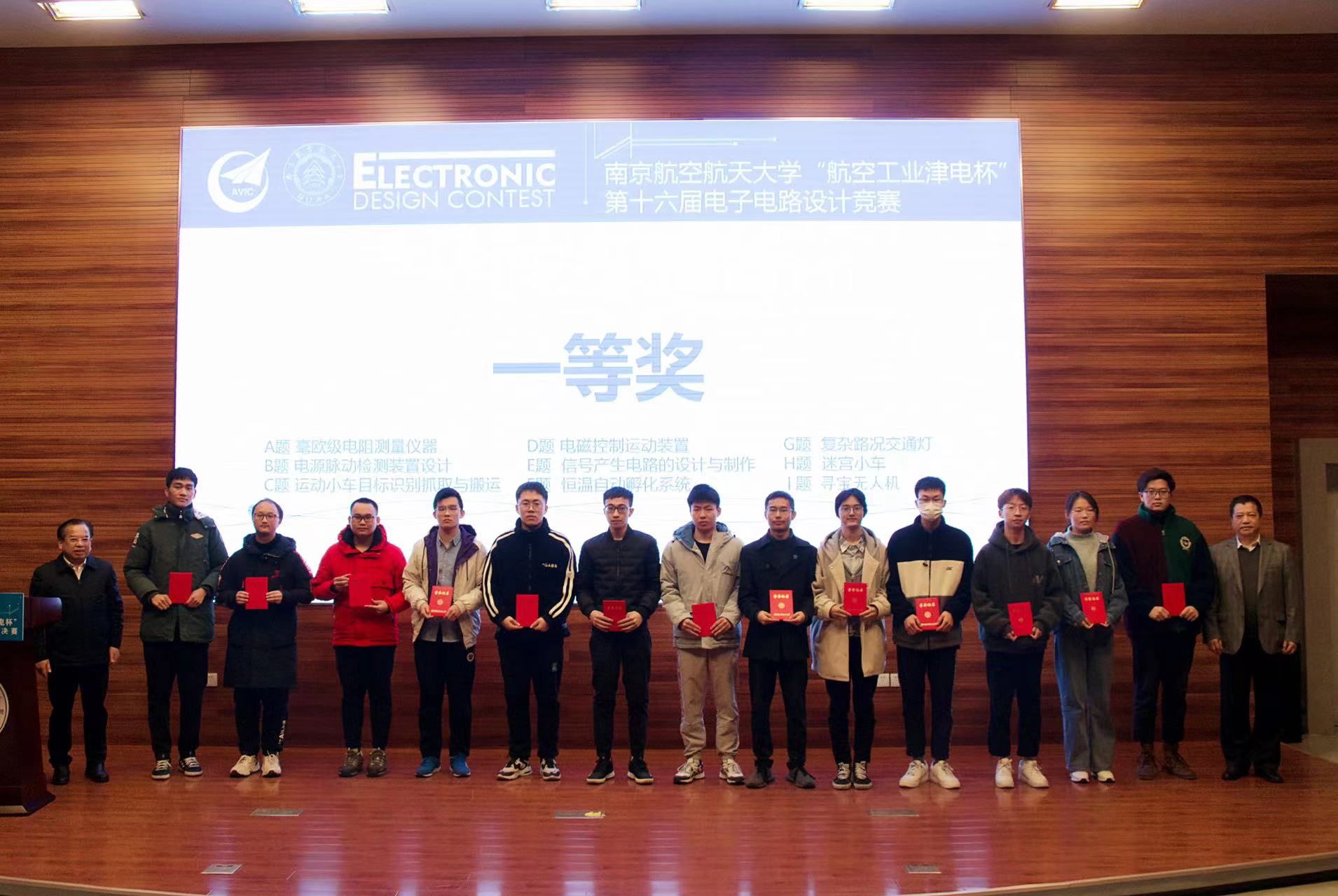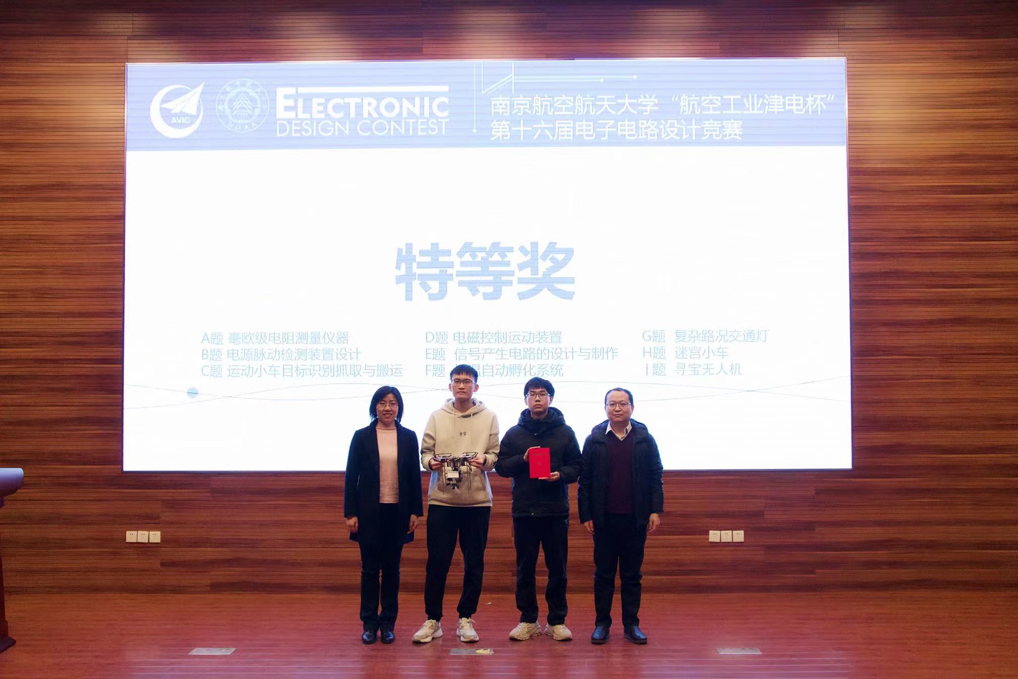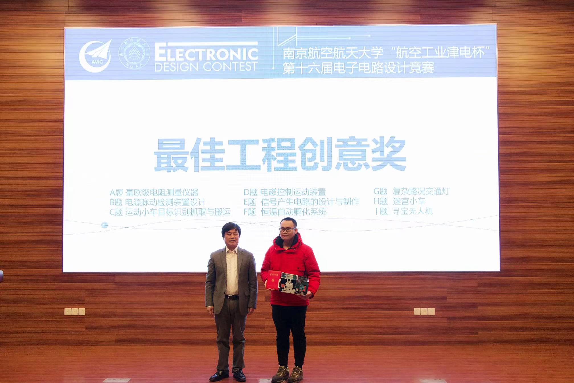本届竞赛共评出特等奖1项,一等奖13项,二等奖28项,优胜奖20项,最佳工程实践奖1项和最佳工程创意奖1项。在场的嘉宾和评委为获奖同学颁发了获奖证书。在热烈的掌声中,“航空工业津电杯”第十六届电子电路设计竞赛圆满落下帷幕。