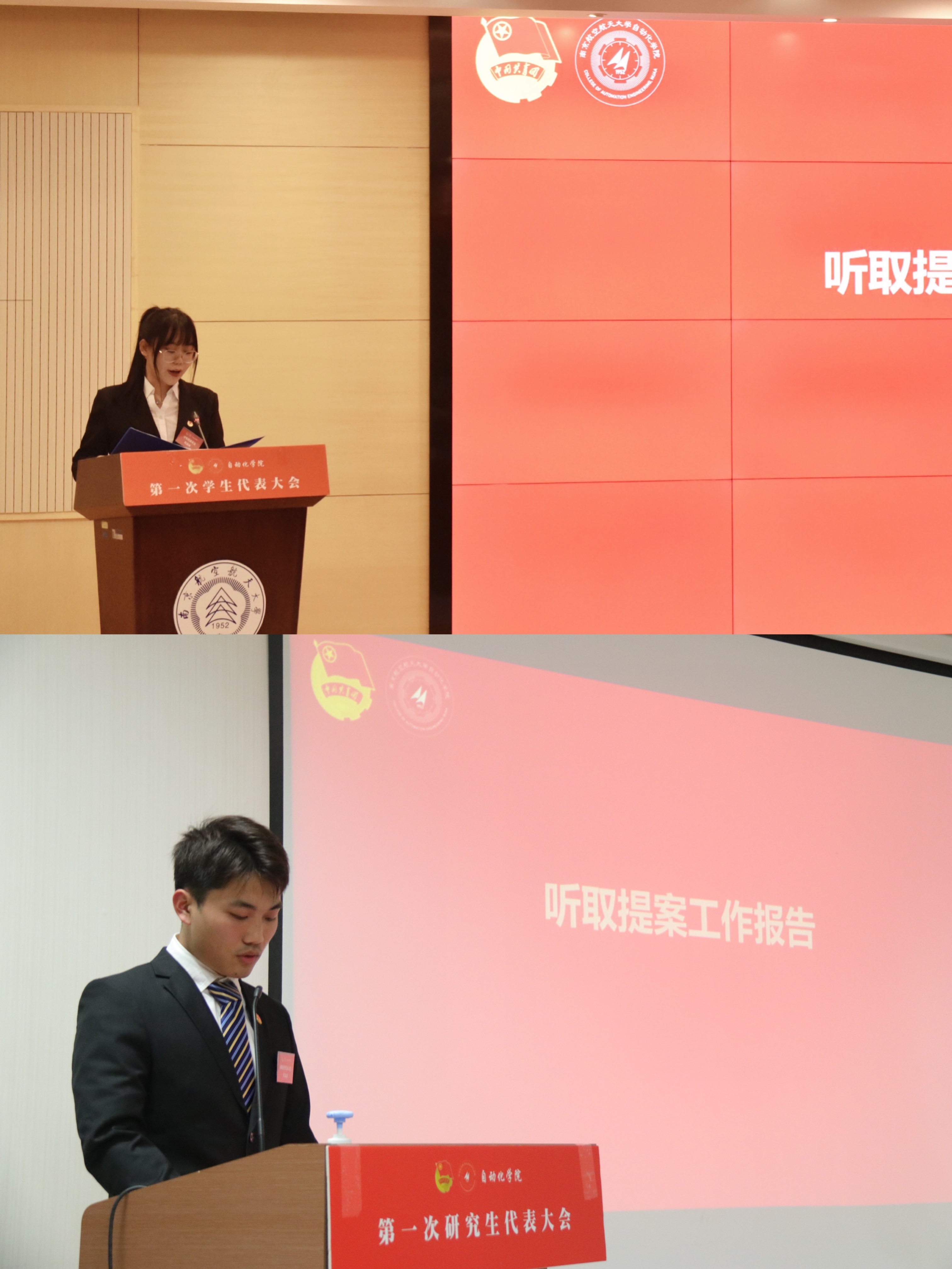 裴国蓉、罗统分别代表本次学生会、研究生会筹备委员会作提案工作报告。本次学代会、研代会收到了代表提案39件,涉及公共服务、教学管理等五个方面,较为全面真实的反映了我院同学的意见建议。提案工作的认真推进也是学生会、研会全心全意服务同学,担当师生联系桥梁的良好体现,对学院和学校的发展建设具有重要意义。