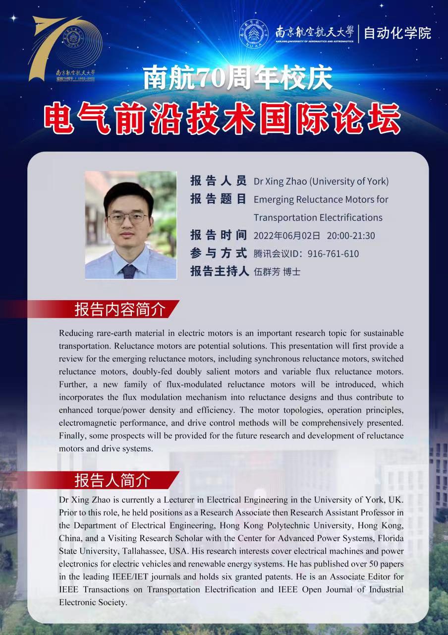 【学术报告】Emerging Reluctance Motors for Transportation Electrifications