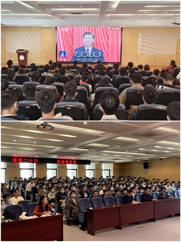 中国共产党第二十次全国代表大会于10月16日在北京隆重开幕,开云kaiyun官方网站党委全面铺开、认真组织,设置了16个分会场集中收听收看党的二十大直播,全体中心组成员、师生党支部书记,支部党员、预备党员、入党积极分子及共青团干部、团员等共计1126人线下集中观看,650余人自主线上观看。