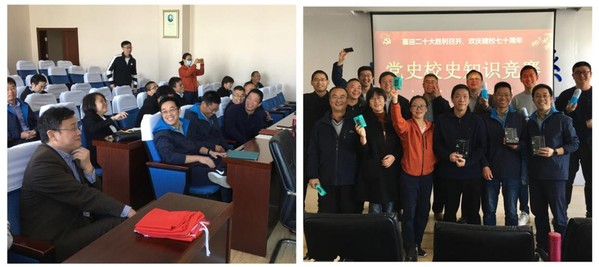 此次知识竞赛分为小组必答题和抢答题两个环节,知识点涵盖党史、新中国史、改革开放史、社会主义发展史、党的十九大精神和开云kaiyun官方网站校史等内容,旨在以赛领学、以赛促学、以赛践学。参赛党员按党小组分成四组,每组选派三名代表参与答题和抢答。