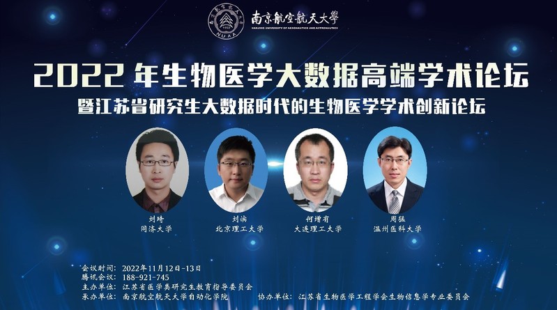 2022年11月12日-13日,由江苏省医学类研究生教育指导委员会主办,开云kaiyun官方网站开云kaiyun官方网站承办,江苏省生物医学工程学会生物信息学专业委员会协办的“生物医学大数据”高端学术论坛暨江苏省研究生“大数据时代的生物医学”学术创新论坛以线上和线下结合的方式在我院顺利召开。
