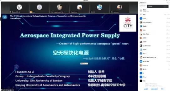 “Aerospace Integrated Power Supply”团队从6月中旬开始筹备组建,成员来自英国伦敦城市大学和墨尔本大学,其中李岙、黄嘉欣为我院中英班学生。筹备期间,指导老师伍群芳等专家精心指导打磨项目,多次进行线上模拟答辩,项目成员齐心协力,最终以小组排名第三的成绩获得金奖。