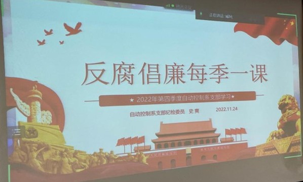 接着,联合支部还学习了《反腐倡廉每季一课》,自控系支部曾庆化书记带领大家学习了近期的相关内容,并分享了自己的学习心得。