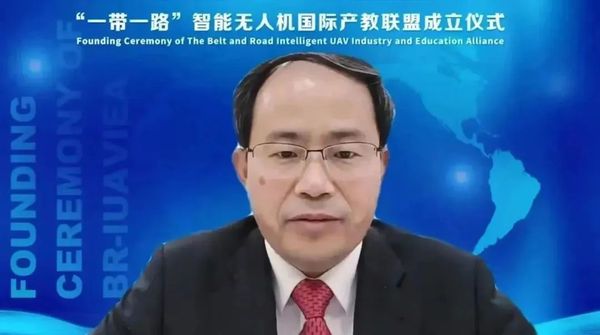 之后,在线上线下全体参会代表和嘉宾的见证下,单忠德、姜斌携中方发起单位代表以及外方发起单位代表共同倒数,点亮联盟标识,标志着“一带一路”智能无人机国际产教联盟正式成立。