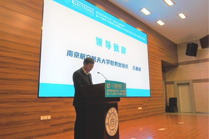 孔垂谦代表学校对天津航空机电有限公司有关领导、评委专家和参赛成员们的到来表示欢迎和感谢。他回顾了我校电子电路竞赛发展历史,并指出电子电路设计竞赛历年来不断坚持创新,深入挖掘内涵,为校人才培养提供助力,为省电子竞赛选拔了大批人才,希望南航学子作为新时代青年,要在此次竞赛中找寻科创初心,怀抱梦想又脚踏实地,敢想敢为又善作善成,争做新时代好青年。