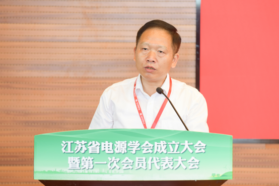 省科协学会学术部岳智顺部长祝贺学会正式成立,并表示成立新学会是一种情怀、是一种责任和奉献。江苏省电源学会的成立正是处于学会发展的黄金期。办好学会要夯实基础,赋予理事会职能,建章立制,广泛吸收会员和青年才俊,制定学会发展的工作规划,也要切入地方产业。