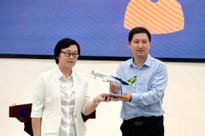易子淳向在座的南航学子们提问主题的深刻含义及C919飞机零件研制等问题,一问一答,尽显我国大飞机事业的艰辛过往和光明未来。同学们还向易子淳请教自动化学子该如何奉献祖国大飞机事业,易子淳鼓励同学们应踏实认真学习,努力拓宽视野,接续走好新时代大飞机事业长征路。最后,李忆现场赠予我院C919大型客机模型。