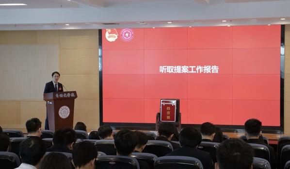 钱焜同学、卓鹏同学分别代表本次学生会、研究生会筹备工作组做提案工作报告。本次学代会、研代会收到了提案64件,涉及学术科研、教学管理、校园建设等八个方面,较为全面真实的反映了我院同学的意见建议。提案工作的认真推进也是学生会、研究生会全心全意服务同学,担当师生联系桥梁的良好体现,对学院和学校的发展建设具有重要意义。