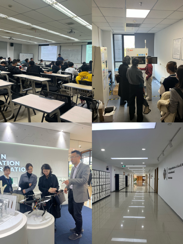 在新国立苏研院期间,我方一行参观了教学科研实验室以及文化建设空间并与项目参与学生和科研人员进行了交流,通过展示的各种照片和科创作品,我们深切感受到这里丰富多彩的校园生活、科技创新氛围和发展趋势。