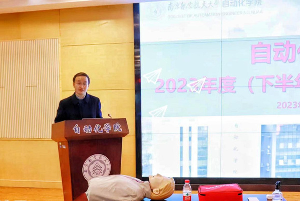 12月11日,我院2023年度研究生导师培训会在学院1号楼511报告厅召开。为加强我院研究生导师应急救护意识、提高应急救护能力,学院特别邀请了南京市红十字会救护培训中心资深主讲老师武楠、马金霞作专题培训。学院研究生导师、教学办老师共计59人参加了培训。培训会由学院副院长宋晓峰主持。