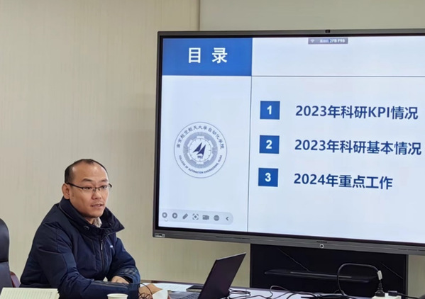 学院学科科研办从2023年科研KPI情况、2023年科研基本情况、2024年重点工作等三个维度对学院科研工作进行了详细的总结汇报。结合KPI考核指标解析学院2023年各基层在科研KPI中的表现,共同讨论了学院后续努力的方向特别是“拓展项目来源渠道,积极推进产学研合作”重点工作中的讨论会上强调,切实努力推进院内学科交叉融合、扩大深化院外合作资源。