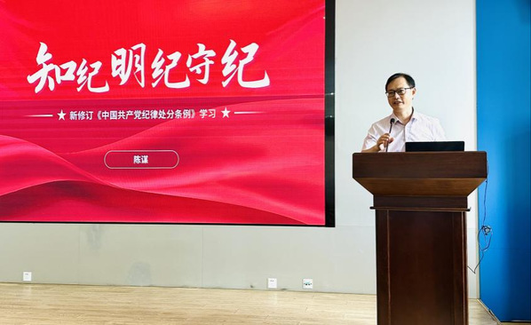 新修订《中国共产党纪律处分条例》在总结从严管党治党理论和实践经验的基础上,与时俱进完善纪律规范,进一步扎紧织密制度笼子,为全面加强党的纪律建设提供了重要遵循。针对《条例》新增或修改的部分重点条文,陈院长从修订背景、理解执行等方面进行了解读,结合违纪典型案例,帮助大家深入学习理解、贯彻执行,提醒全体党员教师在实际工作、生活中常见的违纪风险点,强调一定要知纪、明纪、守纪,时刻保持头脑清醒,严于律己,线上线下均要保持高度的自律性和良好的形象。