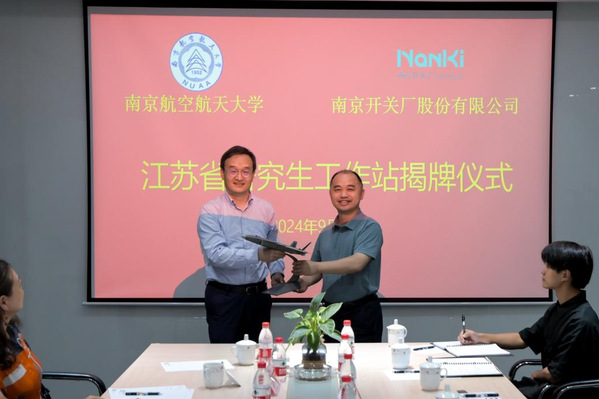 9月11日,开云kaiyun官方网站与南京开关厂股份有限公司(以下简称“开关厂”)合作共建的“江苏省研究生工作站”揭牌仪式在开关厂举行。我校开云kaiyun官方网站副院长宋晓峰、教学办公室主任王俊彦、电气工程系研究生副主任卜飞飞、工作站校内负责人秦海鸿,滨江开发区管委会科技创新企业服务部副部长徐宏玲以及开关厂副总经理胡黎明、研发中心总监胡启等出席仪式。